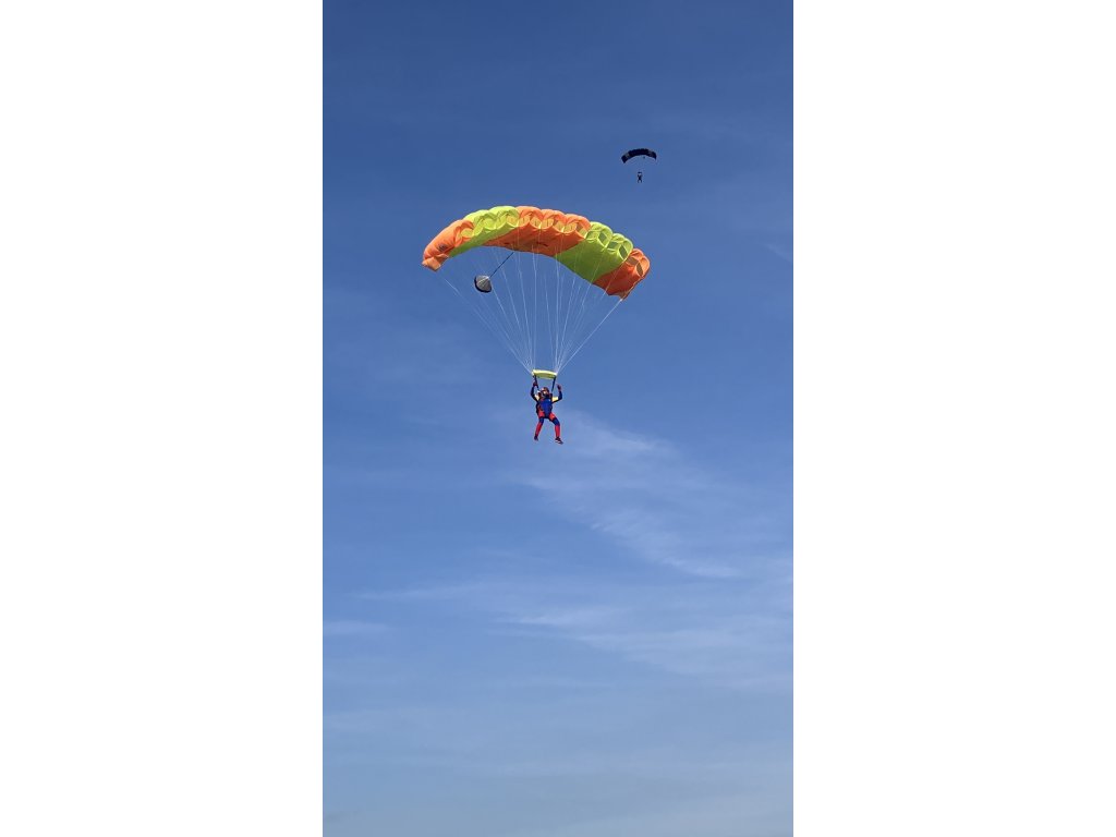 - zoskok absolvuje na „študentskom padáku“, vhodnom pre začiatočníkov kvôli svojej spoľahlivosti a univerzálnosti, s konštrukciou umožňujúcou presné a mäkké pristátie